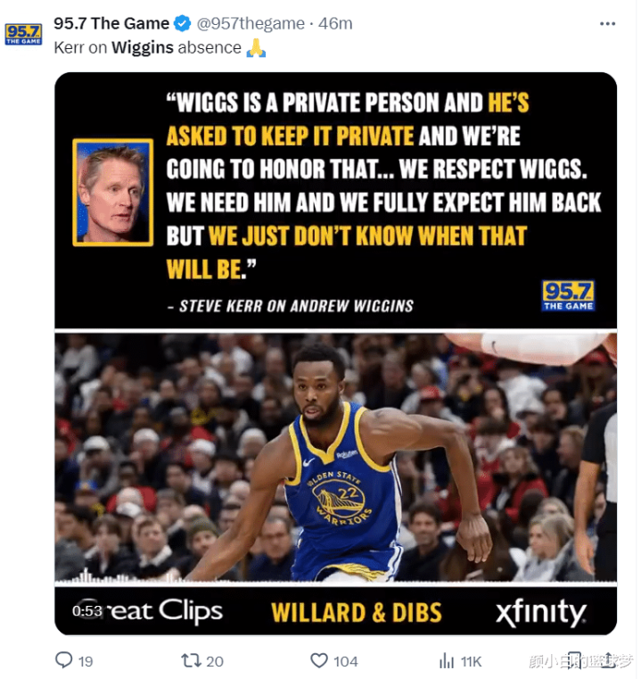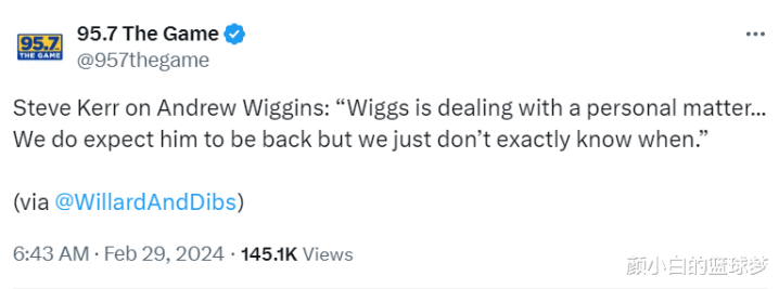 北京工夫2月29日,科尔在选用95.7The Game采访时提到安德鲁-威金斯的情况:“威金斯正在料理个东谈主事务,现时不知谈他多久能重返球队。”