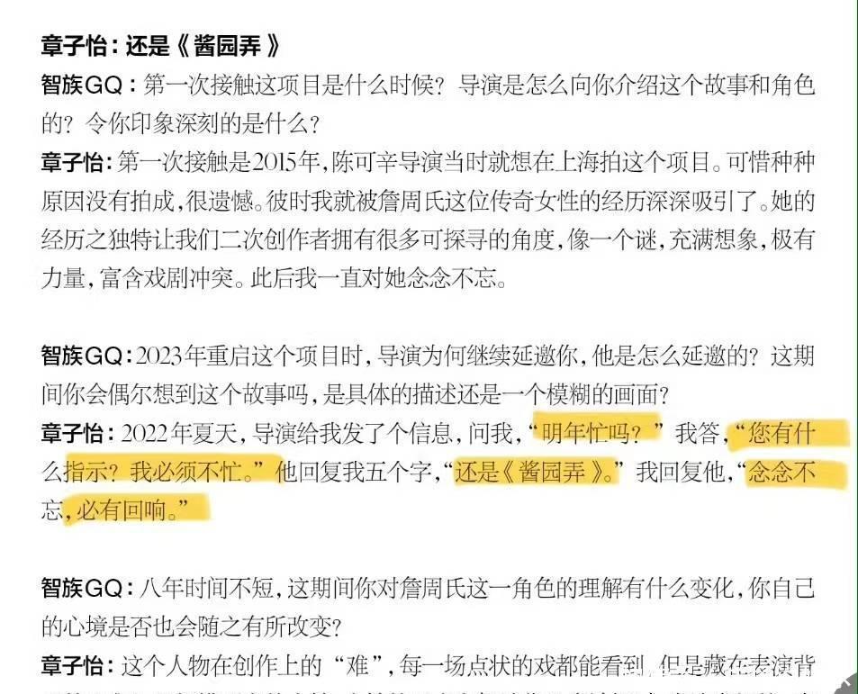 2022年导演发给章子怡短信,邀请她主演《酱园弄》,章子怡简直莫得夷犹就招待导演,其实她一直在期待上演。